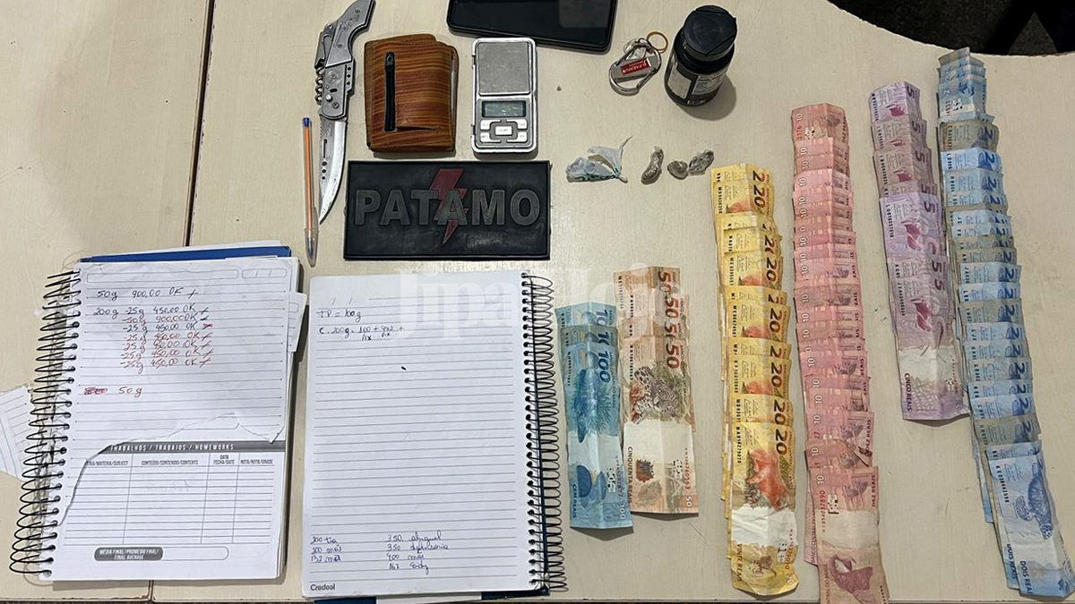 Apreensões no Imóvel Ao realizarem buscas na residência, os policiais do PATAMO encontraram um cenário típico de tráfico de drogas: