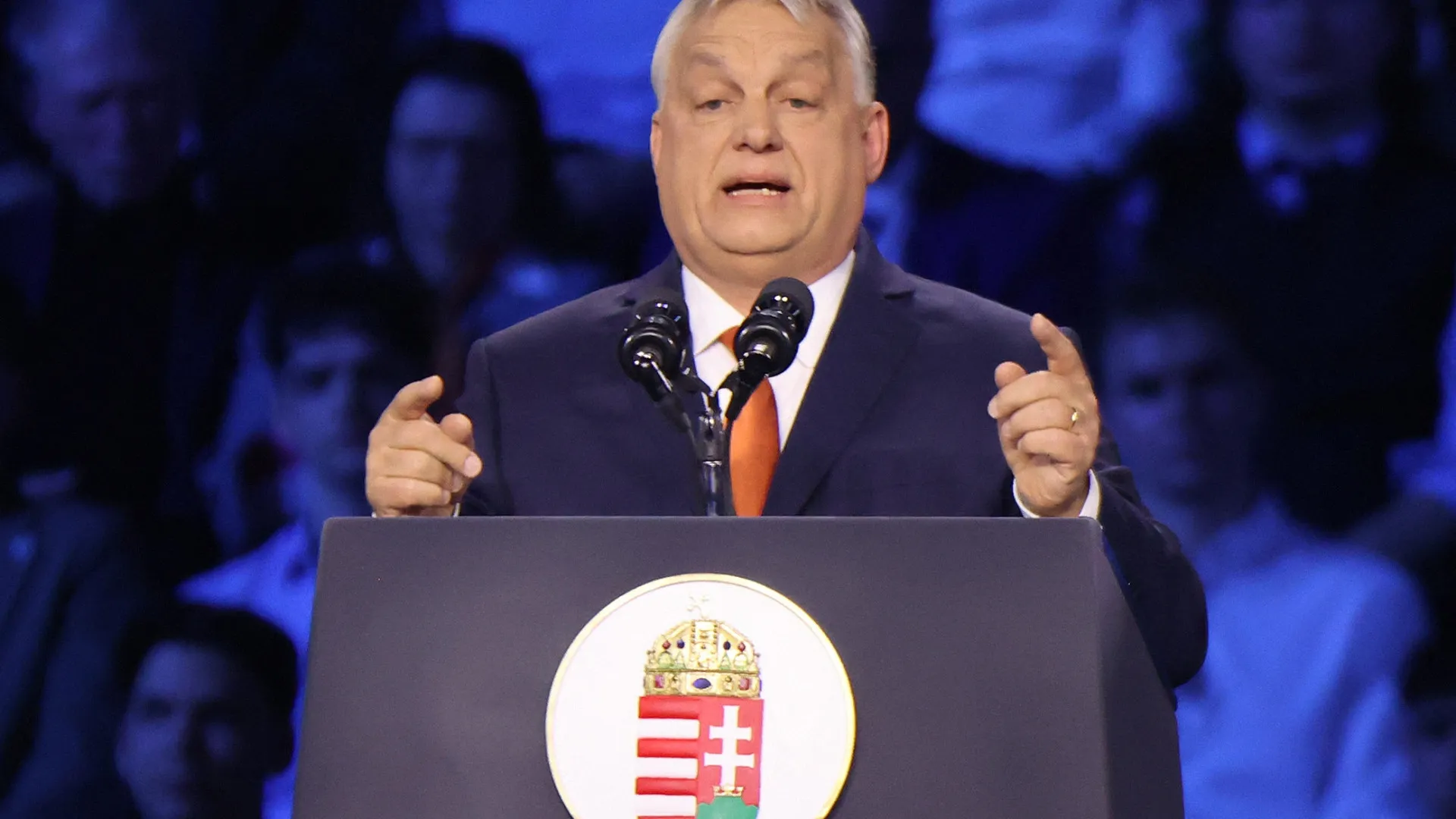 “Para isso, peço-vos, imploro-vos que nos ergamos pela liberdade, pela nossa nação, pela paz e segurança para o nosso país”, disse, perante a plateia que enchia um recinto desportivo na capital húngara.